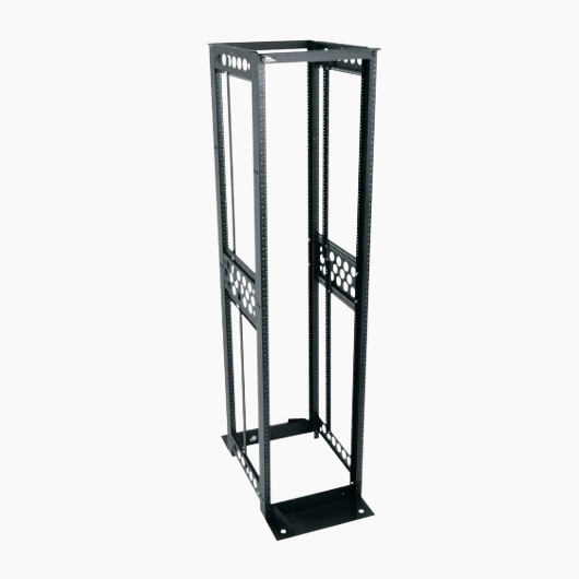 The R4 Series Four Post Open Frame Rack is engineered to support networking, telecom and AV equipment with heavier, deeper profiles. Offering a choice of 12-24 threaded or cage nut rackrails, it provides versatile mounting options, superior strength and increased stability compared to traditional two-post racks.