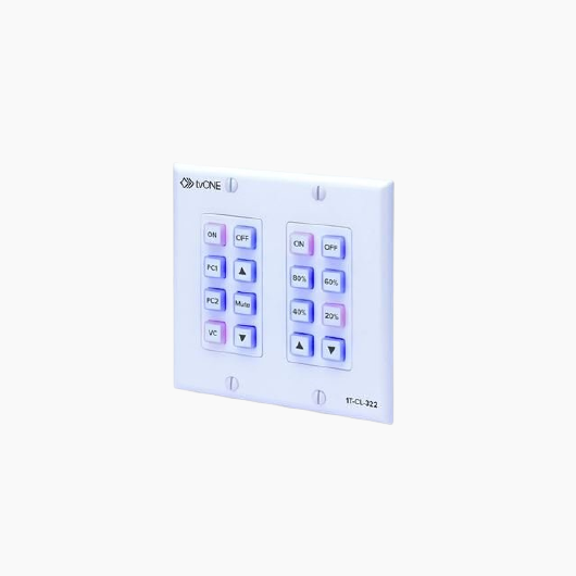 The 1T-CL-322-US Control Panel is an Ethernet-based solution for remote control and system automation. With 16 programmable buttons, it supports up to 128 commands and 32 macros. It includes PoE support, a relay output for external devices and a user-friendly WebUI for configuration and management.