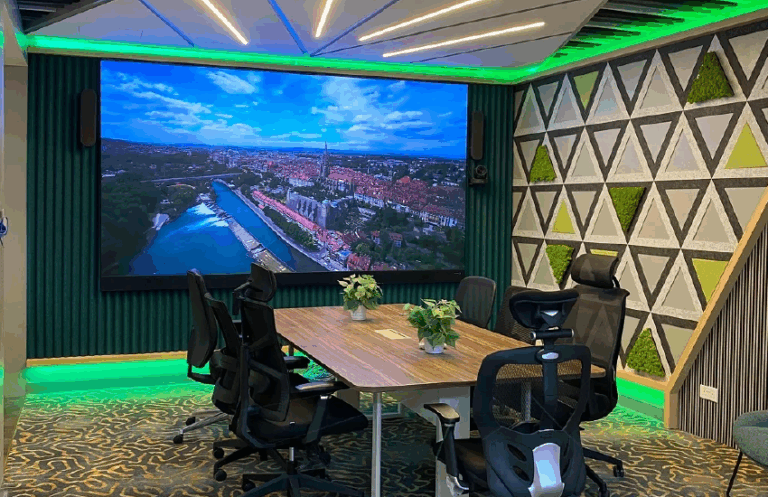 The Unilumin LED display features a standard cathode design for energy efficiency, RGB full-flip technology for vibrant colours and ultra-narrow bezels in a slim 30mm profile. It is built with die-cast aluminium and offers a 10000:1 contrast ratio for deep blacks and reduced reflections. Eye protection mode ensures safer viewing, while built-in audio and bright screen casting enhance collaboration. Ideal for meeting rooms of 10 to 100 people, delivering premium visuals and sound.